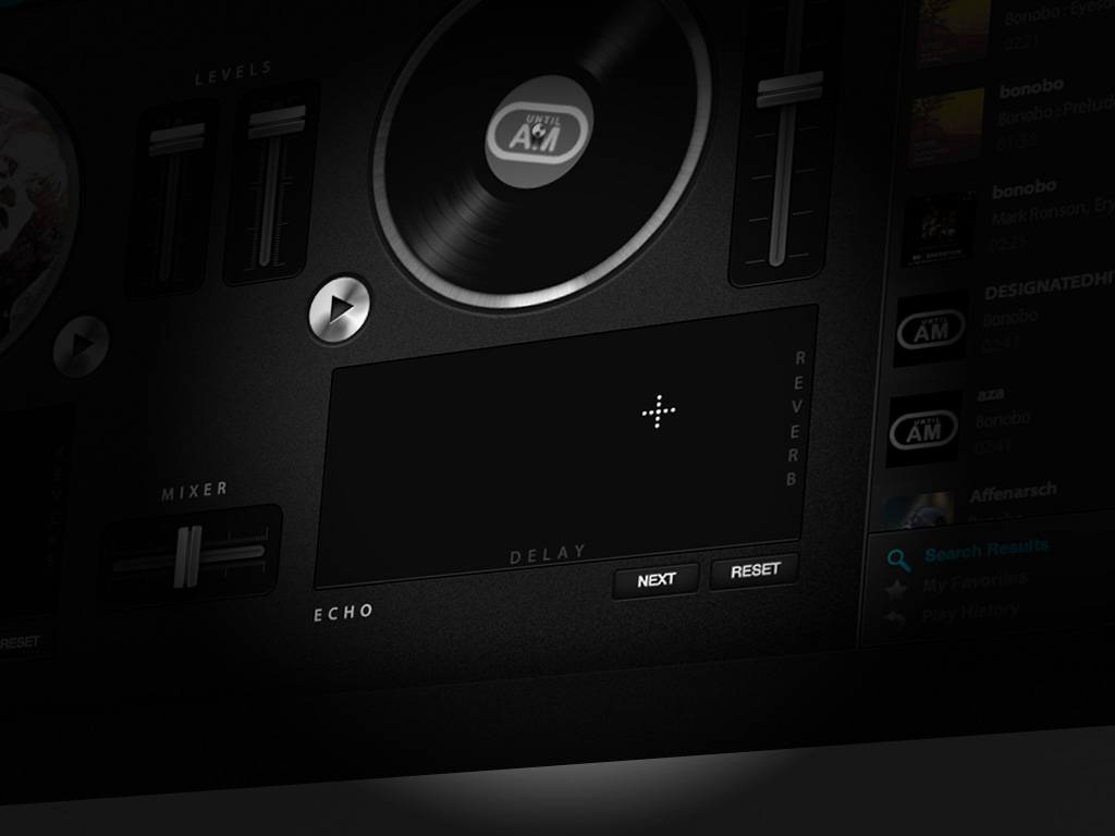 - Simple interface: one list of songs, drag and drop onto the turntables